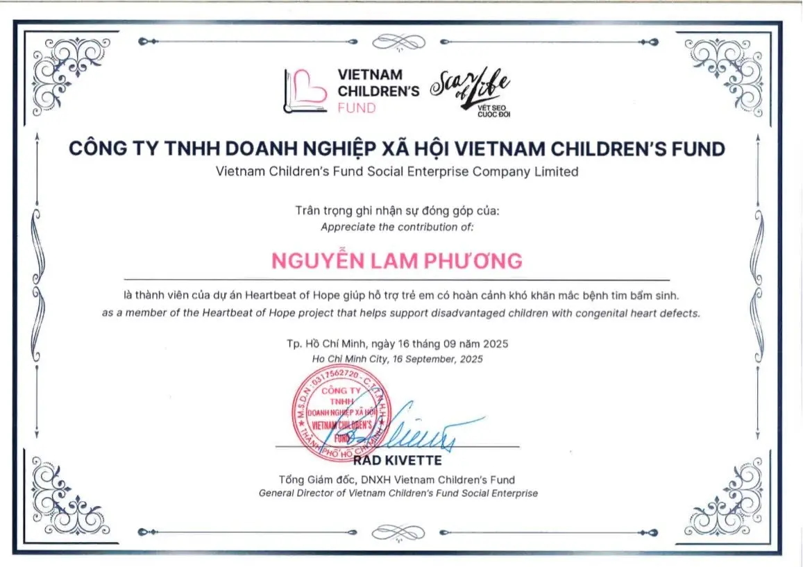 Participated in a charitable project supporting children with heart disease.