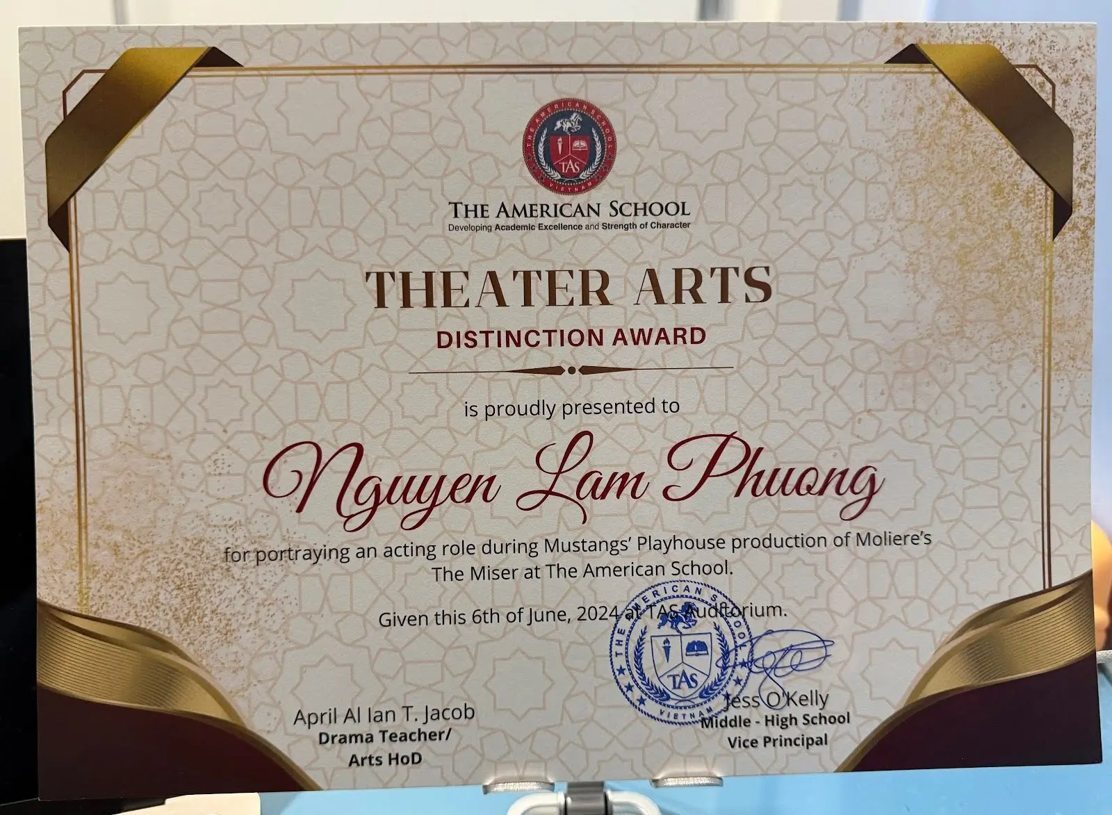 Played as one of the main casts in the musical play Annie, showcasing the acting and vocal performance
